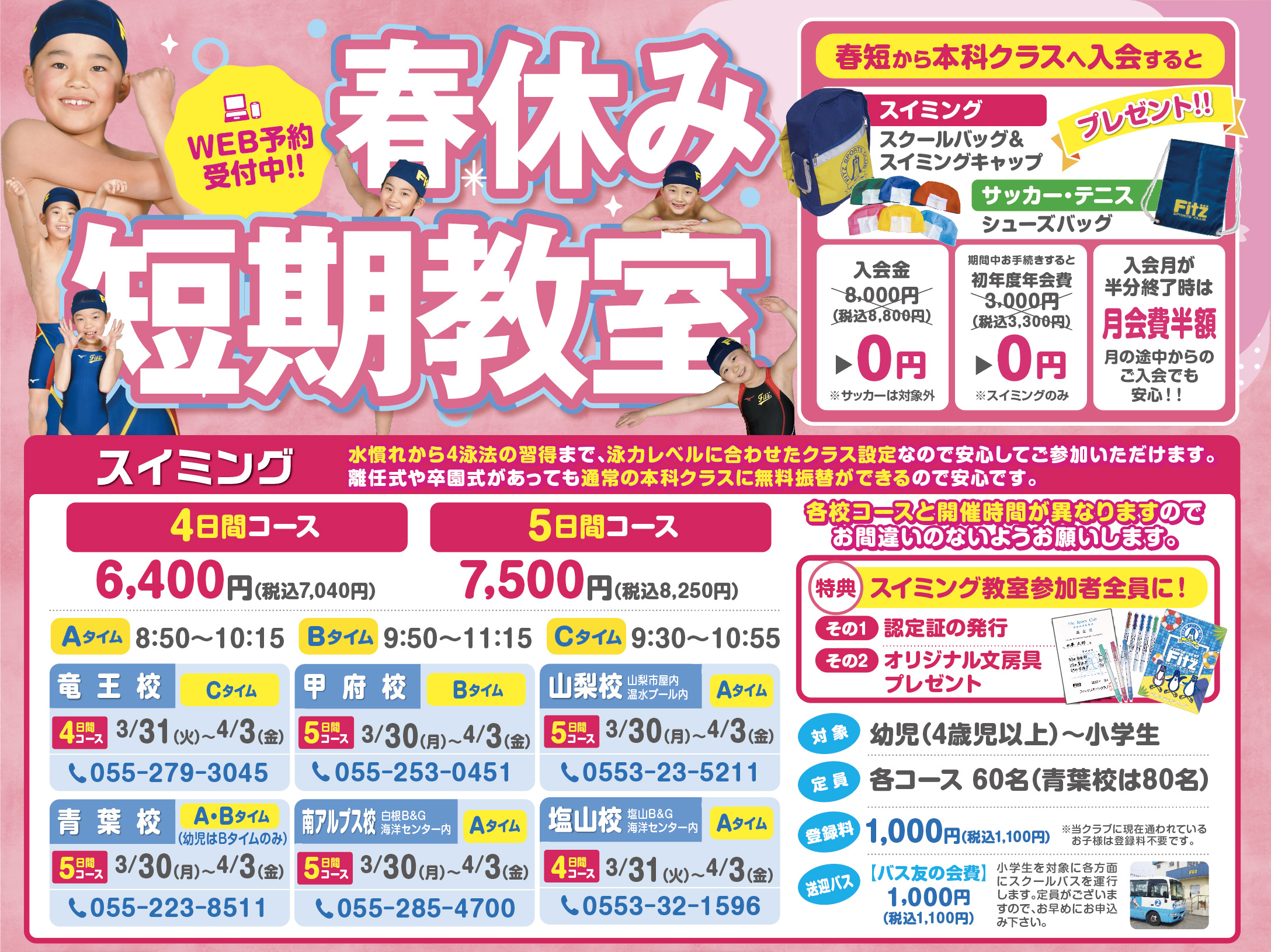 ※幼児は「Bタイム」のみ