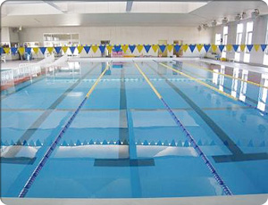 | メインプール25m×6コース、水深1.2m〜1.35m。ウォーキングコース、スイムコース、フリーコースに分かれており、 目的に合わせて快適にお使いいただけます。又、障害者の方もご利用できるようにスロープが設置されています。 | サブプール15.8m〜5m、水深50cm。 小さなお子様でも安心して楽しめるようになっております。 メインプール同様に水温が30度前後、室温は35度前後に保たれています。 |